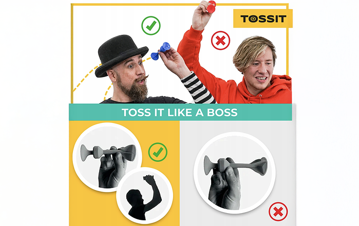 Ostrzeżenie: Rzutka Tossit MEGA DART jest niezwykle wytrzymała - używaj jej odpowiedzialnie i baw się dobrze!